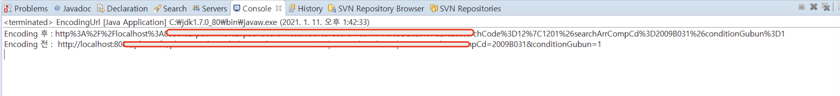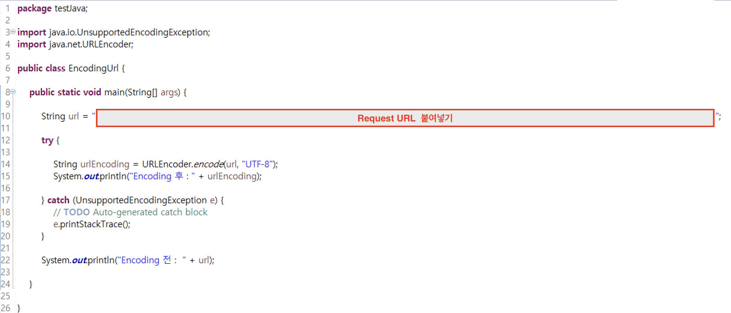 3. Request URL 을 복사하여 아래와 같이 Java URLEncoder.encode(url, "UTF-8"); 로 확인!!!