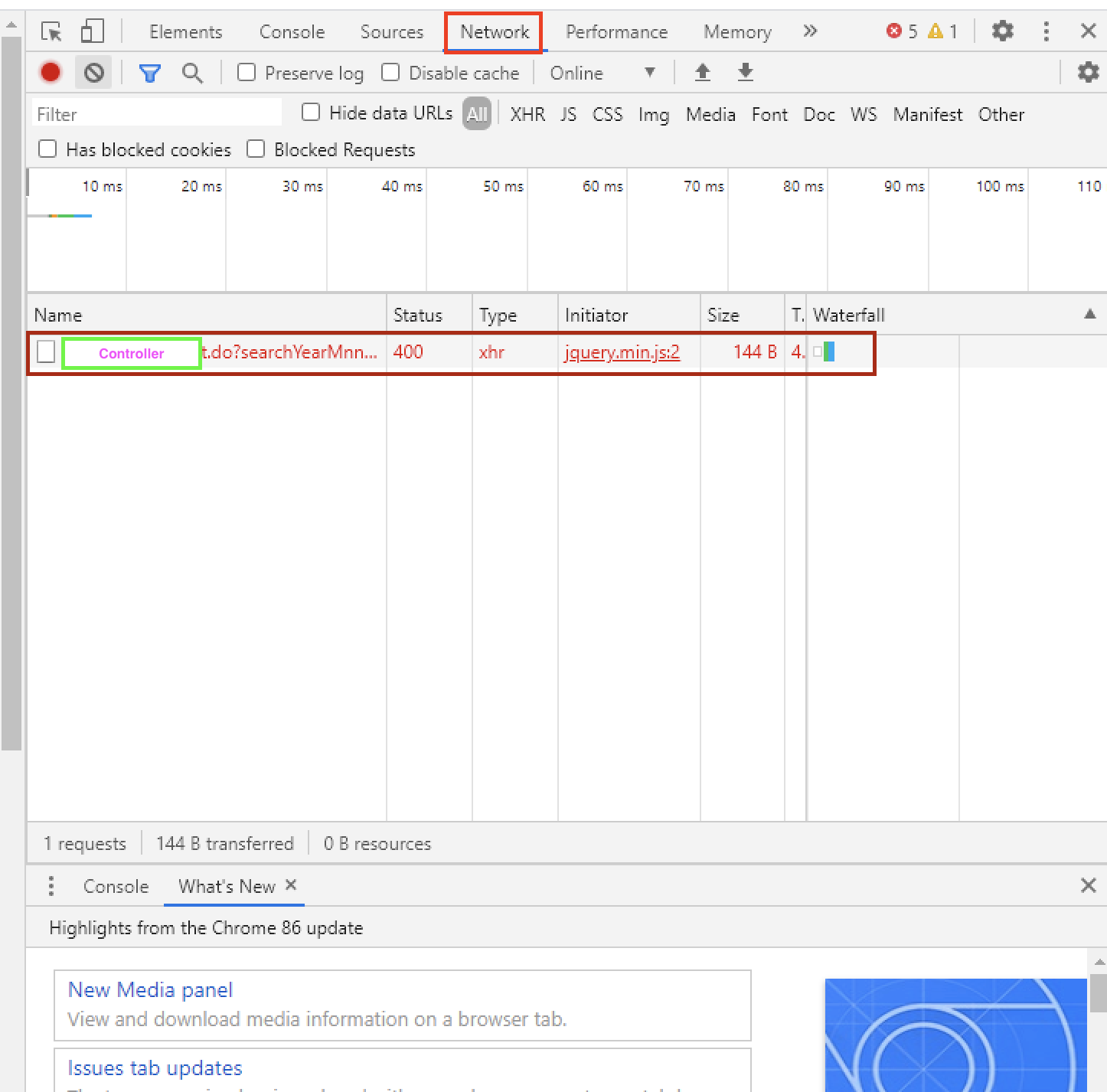1. 문제가 되는 화면에서 F12로 개발자도구에서 오류 확인
